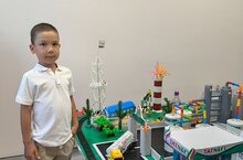 Эмир представлял постройку из бросового материала и различных конструкторов- "Путешествие нефти". Он заняла 1 место в номинации "Юные инженеры".