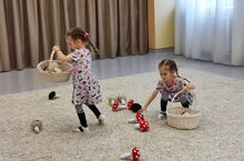 Сыграли в хороводную игру "Урожайная", а также ребята слепили морковки для зайки.
