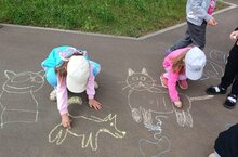 Ещё одно из самых интересных и увлекательных занятий, особенно это любят делать девочки - они рисовали клеем различные картинки, а потом посыпали песком. Получилось очень красивые и необычные рисунки.