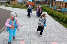 На прогулке прыгали в длину с места, с разбега в песок, на скакалке, играли в "Классики". -