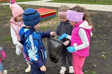 Воспитанники вместе с педагогами поддерживают чистоту на прогулочных площадках, а остальные члены коллектива вокруг детского сада.