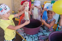Воспитанники понакомились со свойствами резины. Они её растягивали, легко скручивали, а ещё она может держать воду, и имеет специфический запах. Оказалось, что у нее есть и "враги"это - острые предметы!