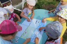 Воспитанники изготовили сами вертушки, научились сами создавать ветер " холодный" и "тёплый ". Рисовали на асфальте воздушные виды транспорта, а также запускали самолёты.