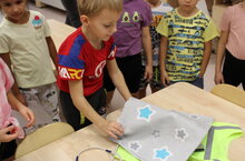 Перед воспитанниками стояла задача собрать картинки жильцов дома, который горит, перед тем, как их спасти. Воспитанники успешно прошли все испытания и спали жильцов из горящего дома. -