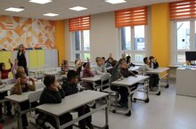 В рамках тесного сотрудничества нашего детского сада с лицеем №38 сегодня состоялась традиционная экскурсия в образовательное учреждение. Нас радушно встретили учителя начальных классов. Детям показали учебный класс, где они смогли посидеть за партами как настоящие школьники. С интересом дети наблюдали как старшеклассники тренируются в баскетбольной секции, в спортивном зале. Далее ребят познакомили со школьной современной библиотекой. В актовом зале ребята сделали зарядку и посмотрели видео из жизни лицея. Экскурсия в школу детям очень понравилась и полные новых впечатлений и положительных эмоций все благополучно вернулись в детский сад! Хочется выразить огромную БЛАГОДАРНОСТЬ коллективу лицея №38 за добродушие и гостеприимство , а также полезную и увлекательную экскурсию.