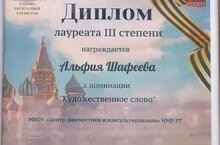 Поздравляем Шафееву Альфию Аркадьевну с призовым местом на фестивале "Лейся, песня, на просторе" в номинации "Художественное слово". Гордимся своими сотрудниками!
