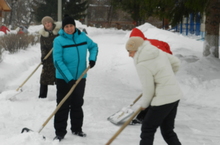 После обильных снегопадов в прогимназии кипит работа. Плечом к плечу - родители, сотрудники и ученики начальных классов очищают территорию от снега.