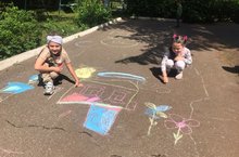 1 июня- день защиты детей. в этот день в нашем ДОУ прошли групповые конкурсы рисунков на асфальте и флеш-мобы в честь наступления долгожданного лета.