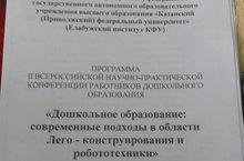 Старший воспитатель Тузова Л.Н. приняла участие во II Всероссийской научно-практической конференции работников дошкольного образования "Дошкольное образование: современные подходы в области Лего-конструирования и робототехники" на базе Елабужского института ФГАОУ ВО "КФУ". Людмила Николаевна представила опыт работы ДОУ в секции "Влияние роботехники на поликультурное образование".