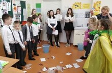 А обучающиеся объединения "Школьное лесничество" (педагог Лукьянова Л.А.) рассказали о своих исследовательских работах и провели мастер-класс по выращиванию лука на перо в виде интерактивной игры для младшеклассников.