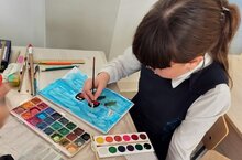 В завершении мальчишки и девчонки нарисовали с помощью красок этих ярких птиц. Снегири получились очень красивые.