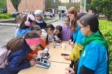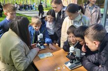 Наши педагоги и воспитанники объединения "Биопрактикум" организовали интерактивную площадку "Мир под микроскопом".