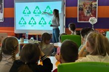 Школьники выполняли задания, которые предлагали им Знатоки переработки - пёс Рекс и Кубокот: