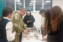 Но этот вечер стал не только праздничным, но и очень значимым. К нам в гости пришел представитель кадетской школы — Юрий Львович. Он провел для ребят особенный мастер-класс по изготовлению окопных свечей.
