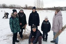 Чтобы помочь рыбам на озере "Пионерское", наши воспитанники из объединения "Школьное лесничество" вместе с работниками управления по охране животного мира и МЧС сделали лунки. С их помощью озеро обогатится кислородом, а значит мора рыбы не произойдет.А чтобы лунки не замерзли, в них ребята закладывали пучки рогоза. -