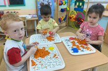 Вот и воспитанники второй младшей группы № 2 , под руководством педагога, решили поиграть с таким чудо - песком. Игры с ним очень увлекли малышей. Они трогали песок на ощупь, рассматривали его, поговорили о том, что кинетический песок может быть разного цвета, пытались пропустить его сквозь пальцы, лепили куличики, пересыпали его из одной емкости в другую, делали из песка грядки, на которых растут овощи.