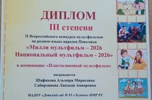 Наши педагоги Шафикова А. М и Сабирзянова Л.А приняли участие во II Всероссийском конкурсе мультфильмов на родном языке народов Поволжья "Милли мультфильм -2026 Национальный мультфильм -2026"️