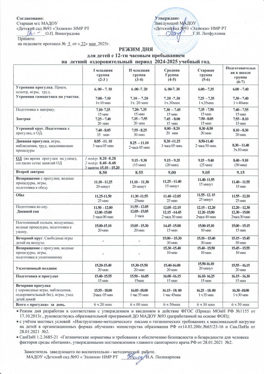 Режим дня на теплый период на 2024-2025 уч.год