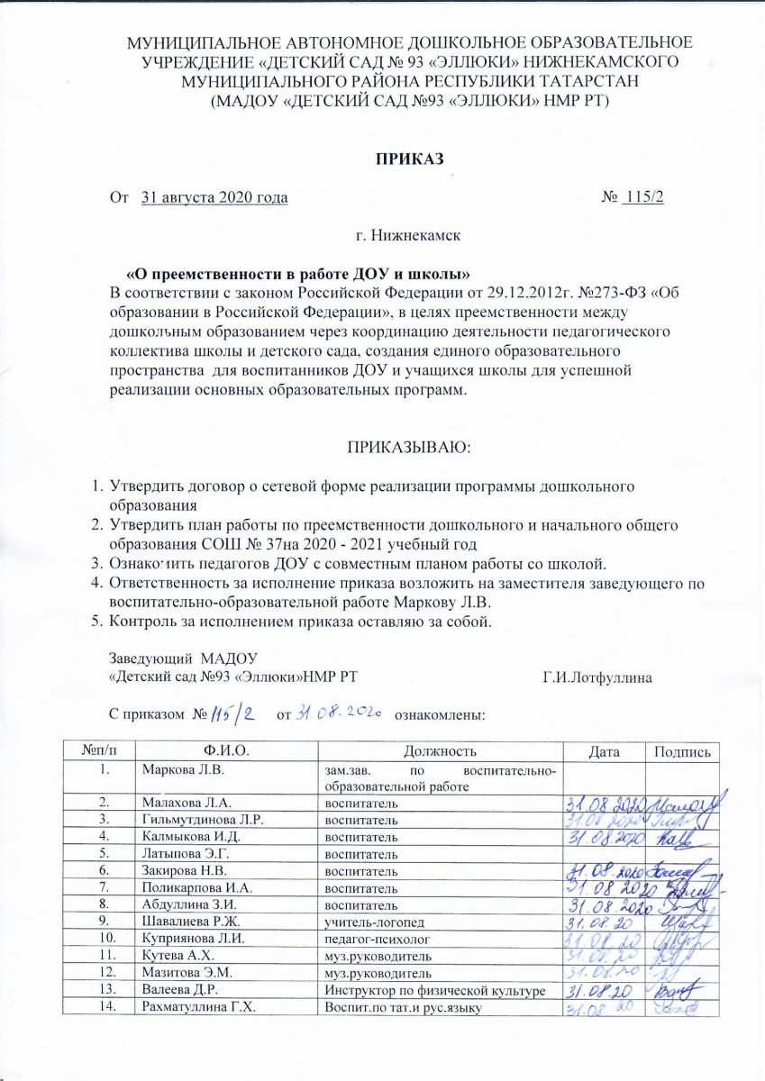 Приказ о приеемственности в работе ДОУ и школы..jpg