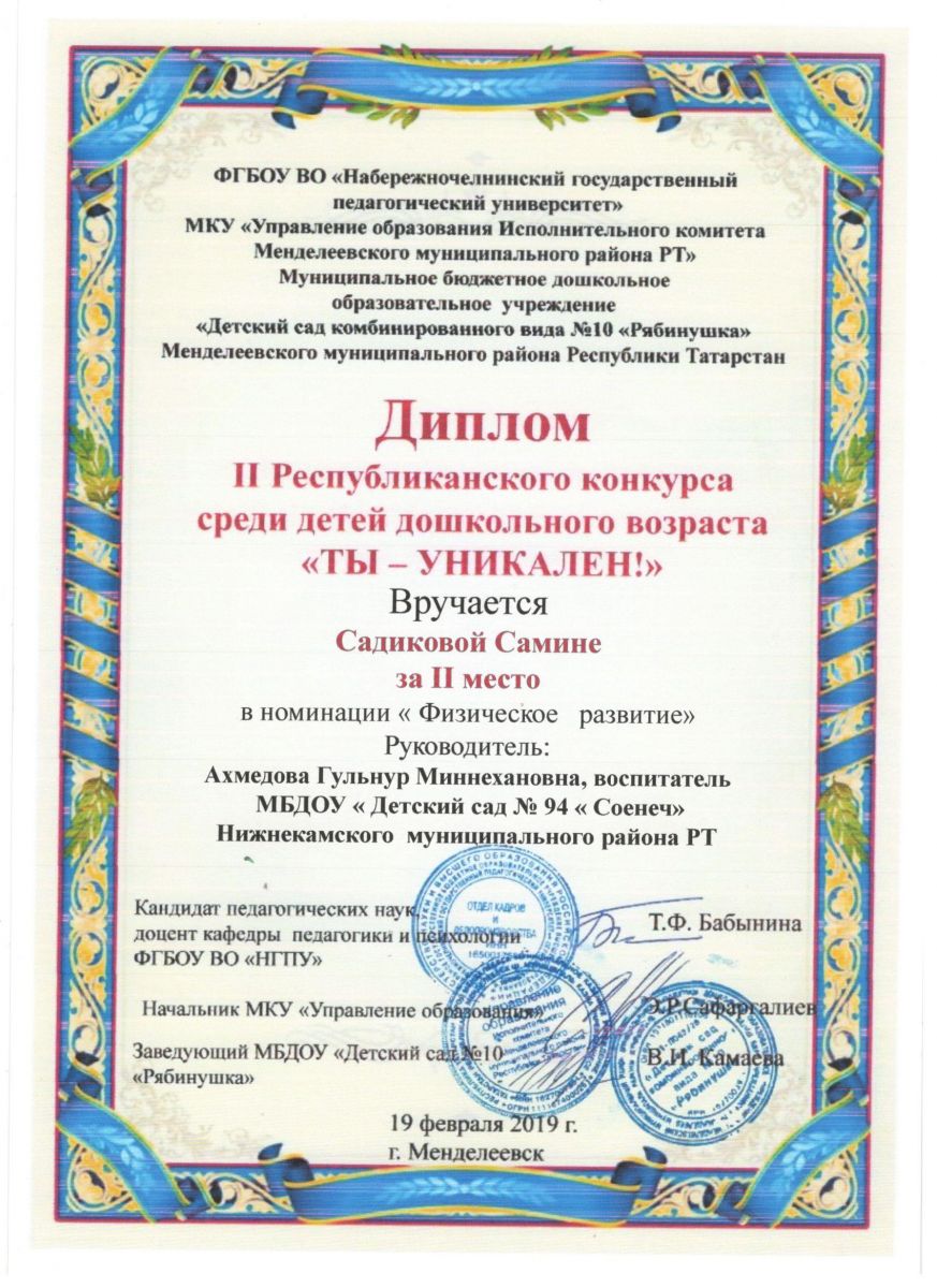 | Короткое название: | МБДОУ "Детский сад № 94 "Соенеч" НМР РТ |