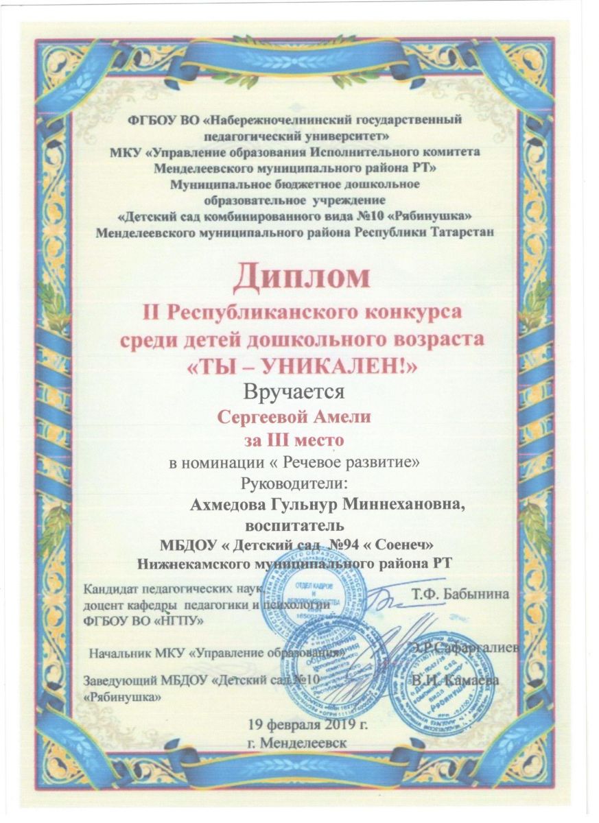 II Республиканский конкурс среди детей дошкольного возраста "Ты -уникален!"