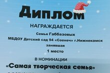 Поздравляем семью Габбазовых: Айваза, Рузилю, Айзилю, Айзата и Марьям (воспитанники гр.9) и педагогов Мухамедзянову Г.И. и Валиеву А.Ф. с 1 местом в региональном конкурсе видеопоздравлений. Нужно было поздравить с Новым годом на 3 языках. И это получилось у них блестяще