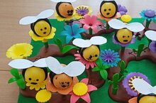 Балалар рәхәтләнеп кортлар гаиләсе ясадылар. Тагын бал кортлары нектар җыйсын өчен чәчәкле алан ясадылар.