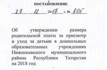 С положением об утверждении размера родительской платы за присмотр и уход за детьми в дошкольных образовательных учреждениях Нижнекамского муниципального района Республики Татарстан на 2018 год можно по ссылке здесь.