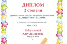 По итогам муниципального конкурса "Калейдоскоп талантов" был выпушен сборник авторских произведений, в котором опубликованы работы нашего детского сада: