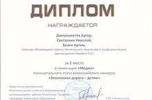 Команда Центра заняла 1 место в номинации «Медиа» муниципального этапа Всероссийского конкурса "Безопасная дорога - детям" 01.12.2021