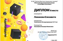 Поздравляем Леванову Елизавету с призовым местом во Всероссийском конкурсе «Созвездие инженеров»! 28.04.2021