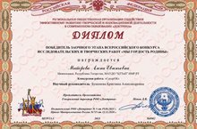 Поздравляем наших победителей заочного этапа Всероссийского конкурса исследовательских и творческих работ "Мы гордость Родины":