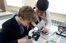 Лабораторная работа по биологии в восьмом классе! Ребята увлечённо разглядывают и изучают микропрепараты!