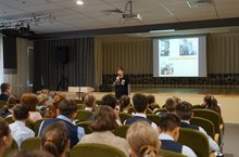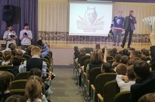 Сегодня на базе школы прошёл "урок хоккея" с КХЛ. Главным гостем был игрок "Нефтехимика" Сидоров Михаил защитник команды. Вместе с хоккеистом в школу заглянули также девушки из группы поддержки и талисман команды Волк. Во время урока для детей провели викторину о хоккее, показали интересный мультфильм, а также ответили на многочисленные вопросы учеников. После все ученики получили подарки, например, "Азбуку КХЛ", в которой подробно для детей рассказывается о базовых правилах игры в хоккей.