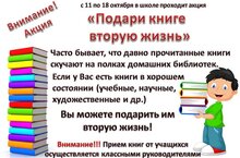 Стартует традиционная школьная акция «Подари книге вторую жизнь». В информационно-библиотечном центре школы с радостью примут в дар Книги в хорошем состоянии: