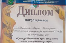 Уполномоченный по охране труда Хайруллина Резеда Хамидовна приняла участие в муниципальной КВИЗ-игре "Культура безопасности труда как ключевой элемент корпоративной культуры", приуроченной Всемирному Дню охраны труда, и удостоилась Диплома победителя! #ВСЕМИРНЫЙДЕНЬОХРАНЫТРУДА