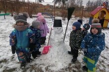 Сегодня во всех детских садах героем дня стал первый снеговик, вылепленный дошколятами. Посмотрите какой красавец получился у малышей из детского сада "Колокольчик" с. Шереметьевка!!!