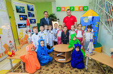Сегодня, 28.11.2016 г. в детском саду № 92 "Ладушки" превратившемся на один день в "Звездный городок", в гостях были космонавты Шкаплеров Антон Николаевич и Овчинин Алексей Николаевич. 28.11.2016