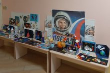 В нашем "Елмаю" организованина выставка поделок и рисунков "Космические дали", посвящённая 60-летию полёта человека в космос.