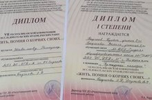 Победа в Республиканской конференции "Жить, помня о корнях своих" 08.02.2019