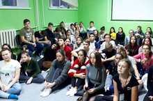 Кикнадзе Анастасия Альбертовна и Сергей Миллер рассказали ребятам, что такое КВН, как писать шутки, пригласили ребят в сезон