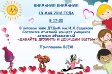 18 мая в 17.30 состоится отчетный концерт творческих коллективов ДТДиМ им. И.Х. Садыкова