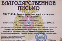 Благодарственное письмо ДТДиМ за активное участие в смотре-конкурсе 27.04.2015