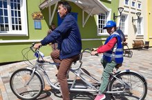 3 июня всемирный день велосипедиста. Администратор парка, Шаехов Раис Фанизович покатал детишек на необычных экспонатах из веломузея "VELIKI".