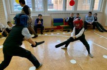 На фото: мастер-класс по историческому фехтованию для обучающихся МБОУ «Начальная школа-детский сад компенсирующего вида для детей с нарушениями зрения №71» НМР РТ