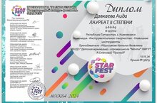 Поздравляем победителей Международного конкурса-фестиваля STAR FEST Диплом ЛАУРЕАТА ІІ СТЕПЕНИ Давкаева Аида, Салахова Ильмира Диплом ЛАУРЕАТА III степени Фролова Варвара Морозова Дарья Преподаватель по фортепиано Абросимова Наталья Яковлевна. Поздравляем победителей и преподавателя с прекрасным результатом!