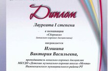 Подведены итоги конкурса Международной олимпиады по «Слушанию музыки» «Музыкальный калейдоскоп» по теме "К.Сен-Санс "Карнавал животных"". Лауреата 1 степени удостоилась Фролова Варвара, также была отмечена благодарственным письмом преподаватель Кушинская Светлана Николаевна, которая подготовила воспитанницу .