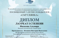 Диплом лауреата I степени получила Фаскеева Альмира на III Всероссийском военно-патриотическом многожанровом конкурсе-фестмивале "На безымянной высоте", преподаватель Игошина Виктория Васильевна! Гордимся и восхищаемся!