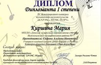 Киршина Мария, ученица 1 класса, преподаватель по фортепиано Сафина Альбина Накиповна, Дипломант I степени на IV Международном конкурсе музыкального исполнительства " KAZAN-MUZIC ЙОРТ", Поздравляем и гордимся