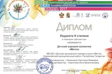 Лауреатом II степени стал хор "Мечта", приняв участие в Ассамблее хоров России, проходившей во Всероссийском детском центре "Орлёнок" с 22 мая по 1 июня. Мероприятие ежегодно проходит при поддержке ЮНЕСКО, Всероссийского хорового общества, Организации Объединенных Наций по вопросам образования и культуры.Принять участие в столь грандиозном мероприятии было почетно, так как ДМХШ "Мечта" с 2015 года входит в состав Всероссийского хорового общества. Наряду с конкурсной программой хор выступил с симфоническим оркестром, исполнив 10 новых произведений, подготовка которых прошла в очень короткий срок (1 месяц).